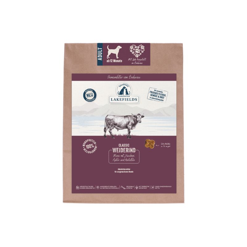Lakefields Hundefutter ist ein hochwertiges, naturbelassenes Hundefutter, das seine Qualität aus den besten regionalen Zutaten der Bodenseeregion bezieht. Viel frisches Fleisch aus artgerechter Haltung, Obst, Gemüse und Kartoffeln aus unbelasteter, traditioneller Landwirtschaft ergeben die hochwertigen Zutaten, die schonend und nährstofferhaltend verarbeitet werden. Die Zutaten haben Lebensmittelqualität, das Hundefutter ist getreidefrei und verzichtet auf synthetische Zusatzstoffe und Stoffe aus gentechnisch veränderten Organismen.