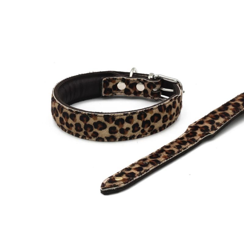 Dieses Hundehalsband aus feinstem Nappaleder mit seiner angenehmen weichen Polsterung sorgt für einen angenehmen Tragekomfort. Der stabile Nylonkern im Inneren sorgt für eine gute Reißfestigkeit und verhindert ein Ausdehnen. Der Leo Look in Felloptik wird kombiniert mit einem eleganten Dunkelbraun.