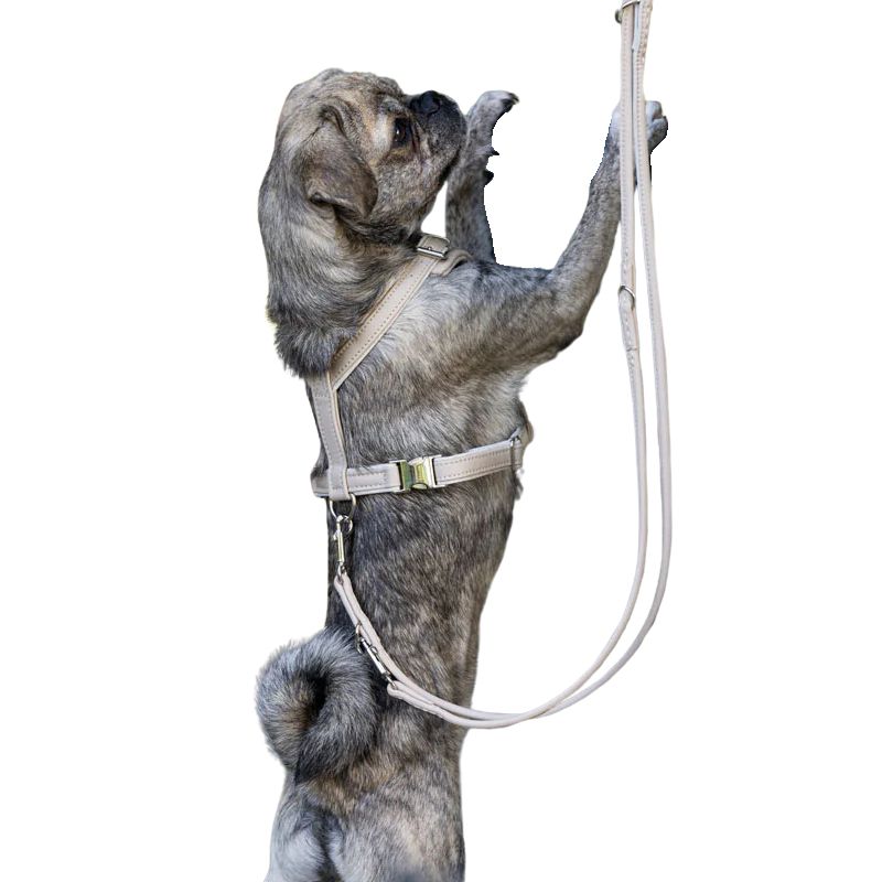 Die Leine hat eine Länge von 2,00 Metern und ist 3-fach verstellbar.