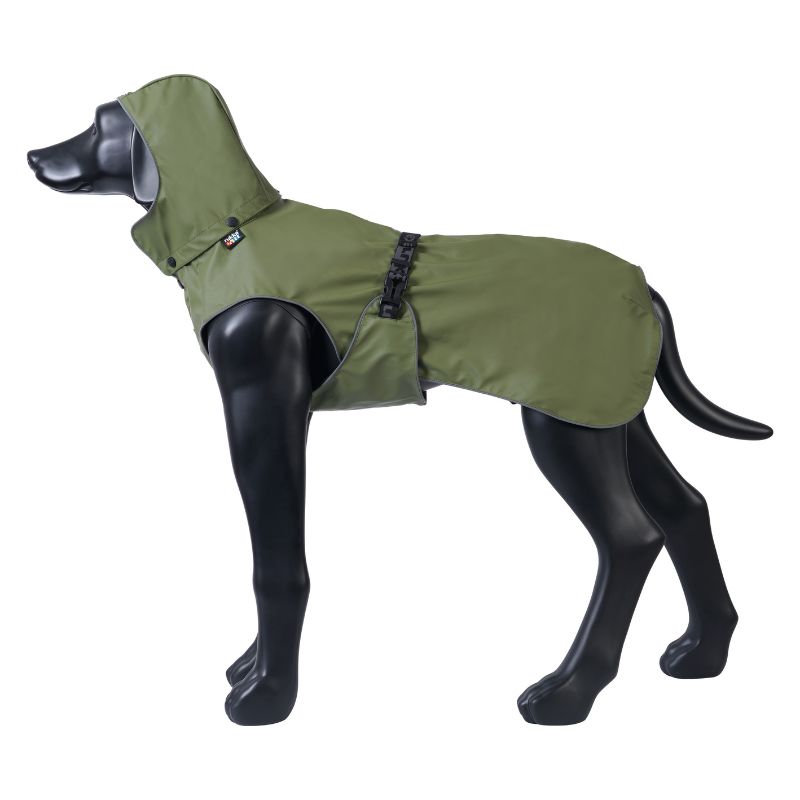 Den wohl coolsten Regenmantel auf der Hundewiese gibt es jetzt auch in Olivgrün und mit Geschirröffnung.